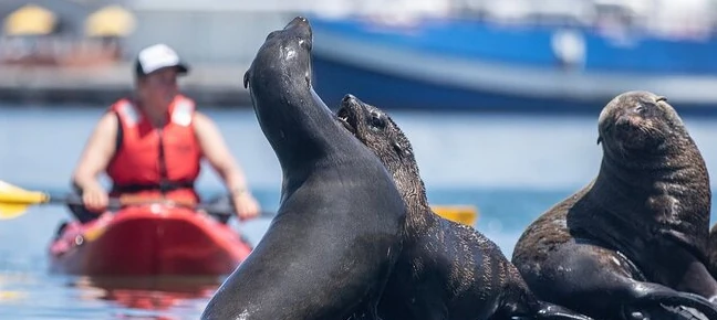 Paddle through the calm waters of Pelican Point, Walvis Bay’s marine sanctuary, alongside playful seals, dolphins, and various coastal bird species. With scenic views of Pelican Point Lighthouse, this eco-friendly, peaceful kayaking experience is perfect for nature lovers and adventure seekers. The tour includes kayaking equipment, wetsuits, and a refreshment break with brötchen, coffee, tea, and juice after the adventure.