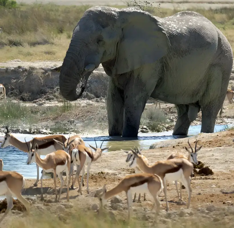 Prepare to be captivated by the sights and sounds of Etosha as you encounter a myriad of fascinating creatures, including giraffes, zebras, rhinos, and more. Whether it's witnessing a lioness on the prowl or marvelling at a herd of elephants at a watering hole, each game-viewing drive promises unforgettable wildlife encounters.