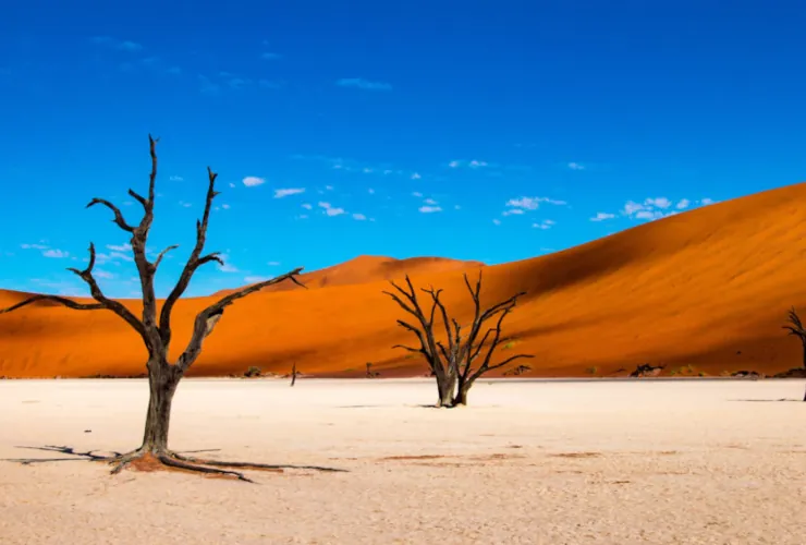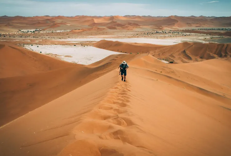 Immerse yourself in the surreal beauty of the Namib Desert on this four-day adventure. Journey from Windhoek to the iconic Sossusvlei, where you'll stay at the unique Desert Quiver Camp and enjoy breathtaking desert landscapes. Spend a full day exploring the towering dunes and otherworldly scenery of Sossusvlei. Continue to the charming coastal town of Swakopmund, staying at Hotel Le Mer and experiencing the vibrant blend of desert and ocean. Conclude your adventure with a return to Windhoek, carrying memories of the stunning Namib Desert and its awe-inspiring vistas.