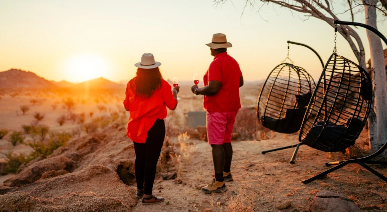 Perfect for couples or groups, our sundowner experience provides an intimate setting to relax, share stories, and connect under the starlit Namibian sky. It’s the perfect way to unwind and create lasting memories.