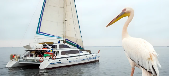 Set sail on a breathtaking boat cruise along Namibia’s stunning coastline with Chena Tours & Safaris. Departing from Walvis Bay, this adventure offers a chance to spot playful dolphins, seals, and pelicans while enjoying the refreshing ocean breeze. Glide past the iconic Pelican Point Lighthouse and witness the vibrant marine life up close. Savor fresh oysters, snacks, and sparkling wine as you soak in the beauty of the Atlantic.