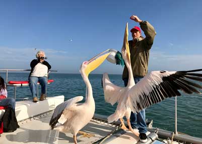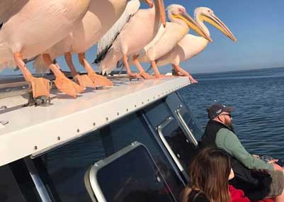 This adventurous and educational cruise, guided by friendly staff, departs every morning from Walvis Bay Waterfront and sails along the beautiful lagoon area, passing by the oyster farms, shipwreck, Pelican Point, the seal colony and the lighthouse. It's a perfect outing for all ages.