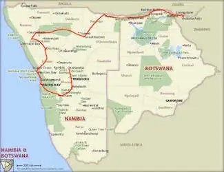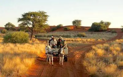 | 2 | Kalahari | Bagatelle Kalahari Lodge | 260km - 3h | Safari en 4x4 dans les dunes rouges du Kalahari Marche avec les Bushman |