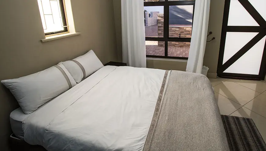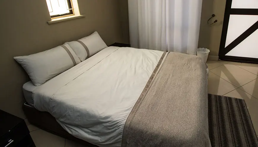 Our double rooms are stylishly furnished with double beds are equipped with an en-suite bathroom (shower), air conditioner, mini fridge, WiFi and DSTV.